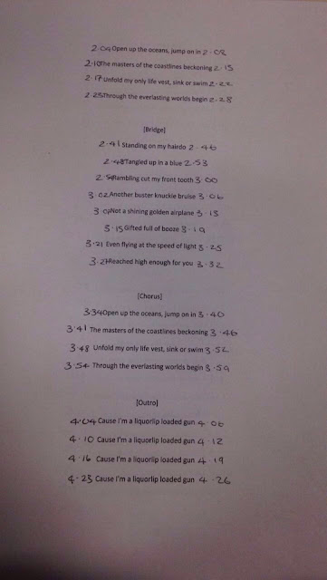 Firstly the title 'Liquorlip Loaded Gun' suggests some relation to alcohol abuse and how maybe in a drunken state the lead singer may abuse/hurt others around him. I feel that the lyrics reflect this perception quite well, I also feel that love is a fairly major theme in the song too.